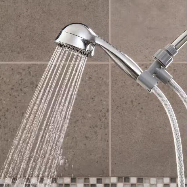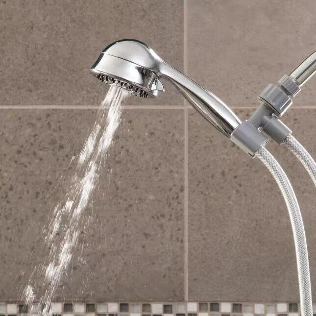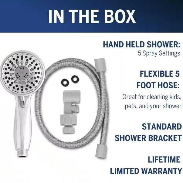 The Waterpik Vardon 5-Spray 3.75 in. Handshower in Chrome offers a customized showering experience, allowing you to choose from five (5) spray settings to best suit your needs. This hand held shower head features a spray control ring that lets you easily switch from 1 spray setting to another. The 5 ft. hose helps bathe children and pets and makes it easier to clean and reach difficult areas. Designed for simple maintenance, the easy-clean nozzles help reduce mineral and hard water buildup for a cleaner bathroom environment.
