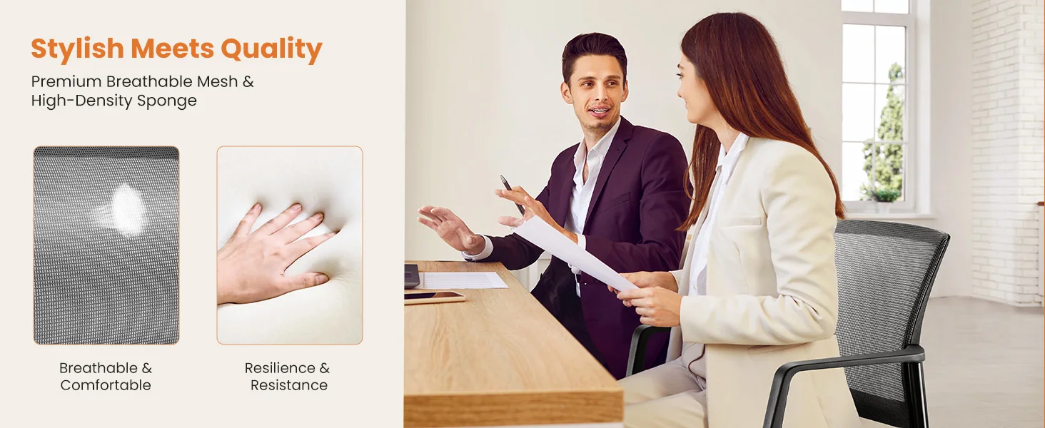 - Elegant and Versatile: The sleek black frame and mesh upholstery blend well with any decor.