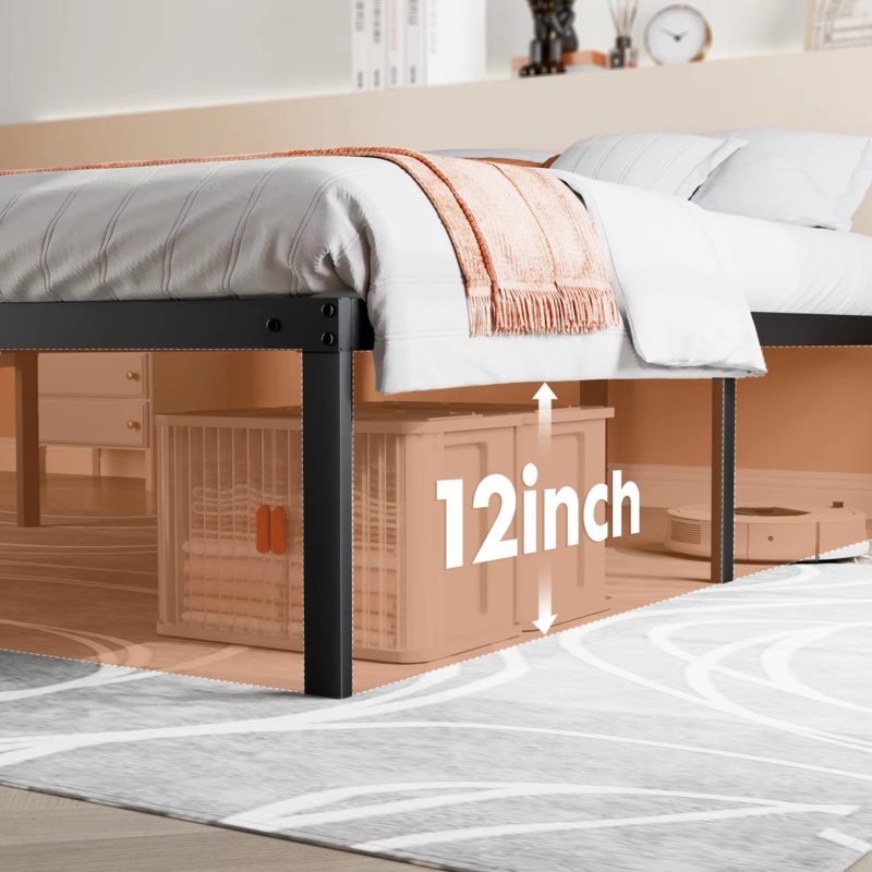 Space-Saving Design: With 14 inches of clearance beneath the bed, this frame provides generous storage space to keep your room neat and organized. It allows you to store odds and ends, reducing clutter and helping with daily cleaning.
