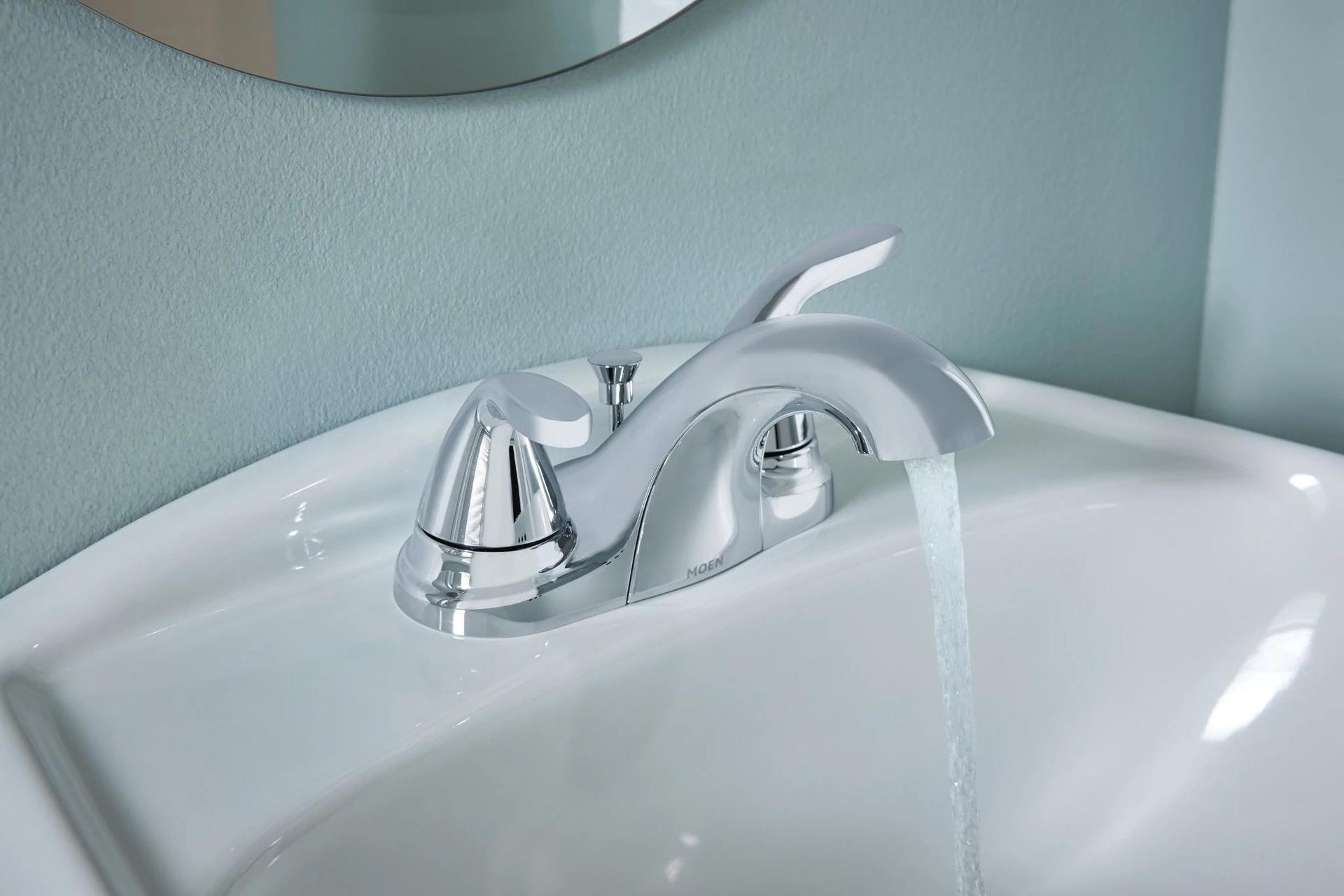Simple and elegant, the Adler 2-Handle Low-Arc Bathroom Faucet from MOEN comes in a sleek-looking chrome finish that is easy to clean. The 1.2 GPM flow rate helps conserve water, producing a WaterSense certified design for sustainable use. The deck plate mount and 1/2 in. connection make the faucet easy to install, while the 2-handle style offers an ADA compliant design that is both durable and easy to use.