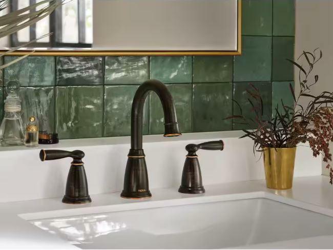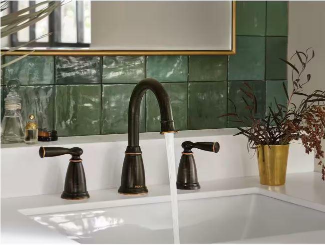 MOEN Banbury 84947BRB Widespread Double Handle High-Arc Bathroom Faucet in Mediterranean Bronze (Valve Included)