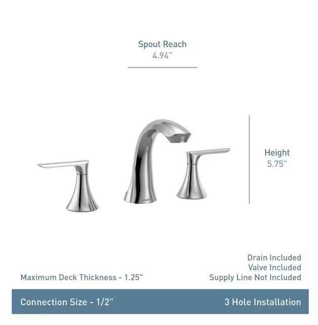 - Faucet handles can be installed at any distance between 8 in. to 16 in. for a more customized widespread installation