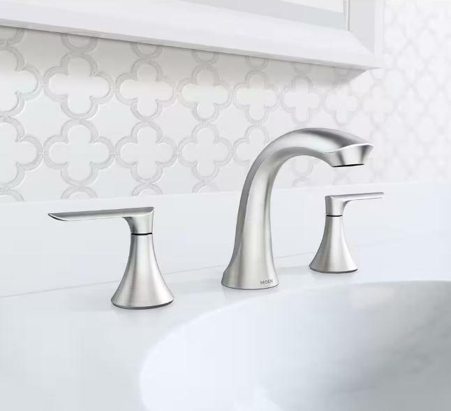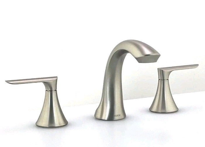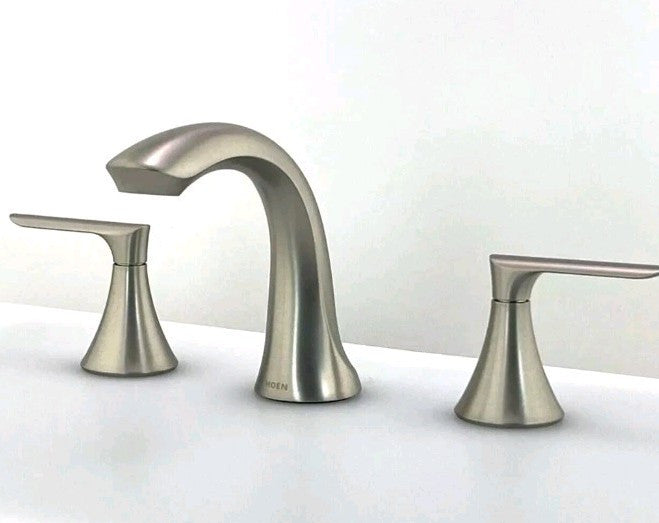 Featuring raw organic lines and smooth curves, the Findlay collection creates a soothing spa-like bathroom experience with its current and refined look. The 8 in. widespread faucet features a high-arc spout to ensure plenty of space for washing hands and the 2 lever handles adjust easily for precise water flow and temperature control. Additionally, a new spring-loaded drain eliminates the need for a lift rod for more streamlined design and installation. Available in MOEN exclusive Spot Resist Brushed Nickel, which resists fingerprints and water spots for easy cleaning.