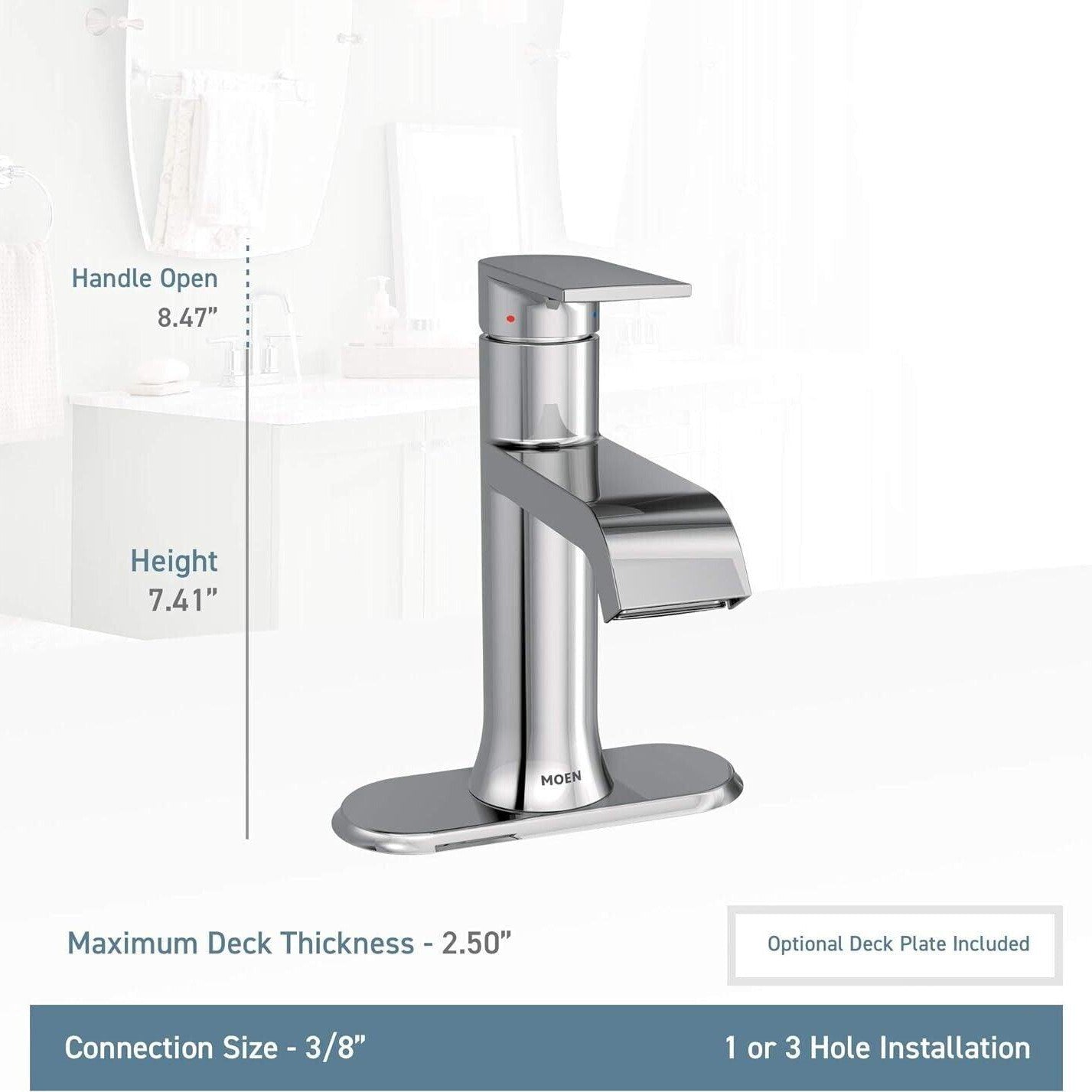 - Single hole mount creates a cleaner look against custom countertops