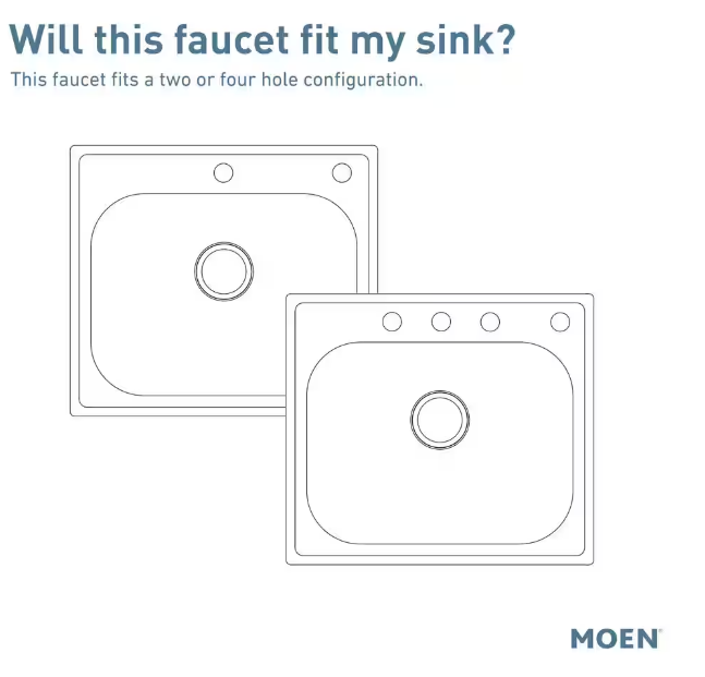 - Faucet Hole Fit: 2 Hole, 4 Hole