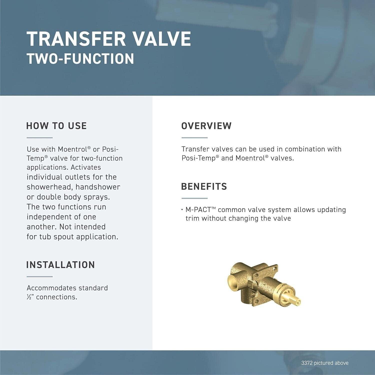 - To be used in addition to a Moen Posi-Temp or Moentrol Valve