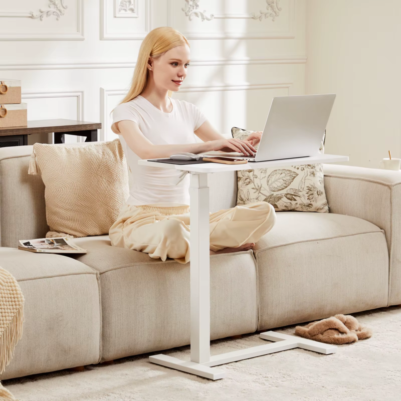 Overbed Bedside Sofa Table with Hidden Wheels Adjustable Height for Bedroom Desk