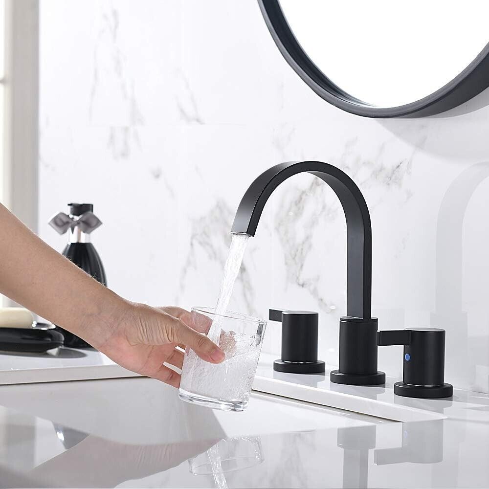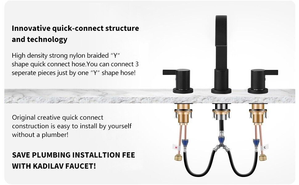 - WIDE COMPATIBILITY: With quick-connect technology, this faucet fits widespread 3-hole sinks from 6 to 12 inches, allowing flexible installation options.
