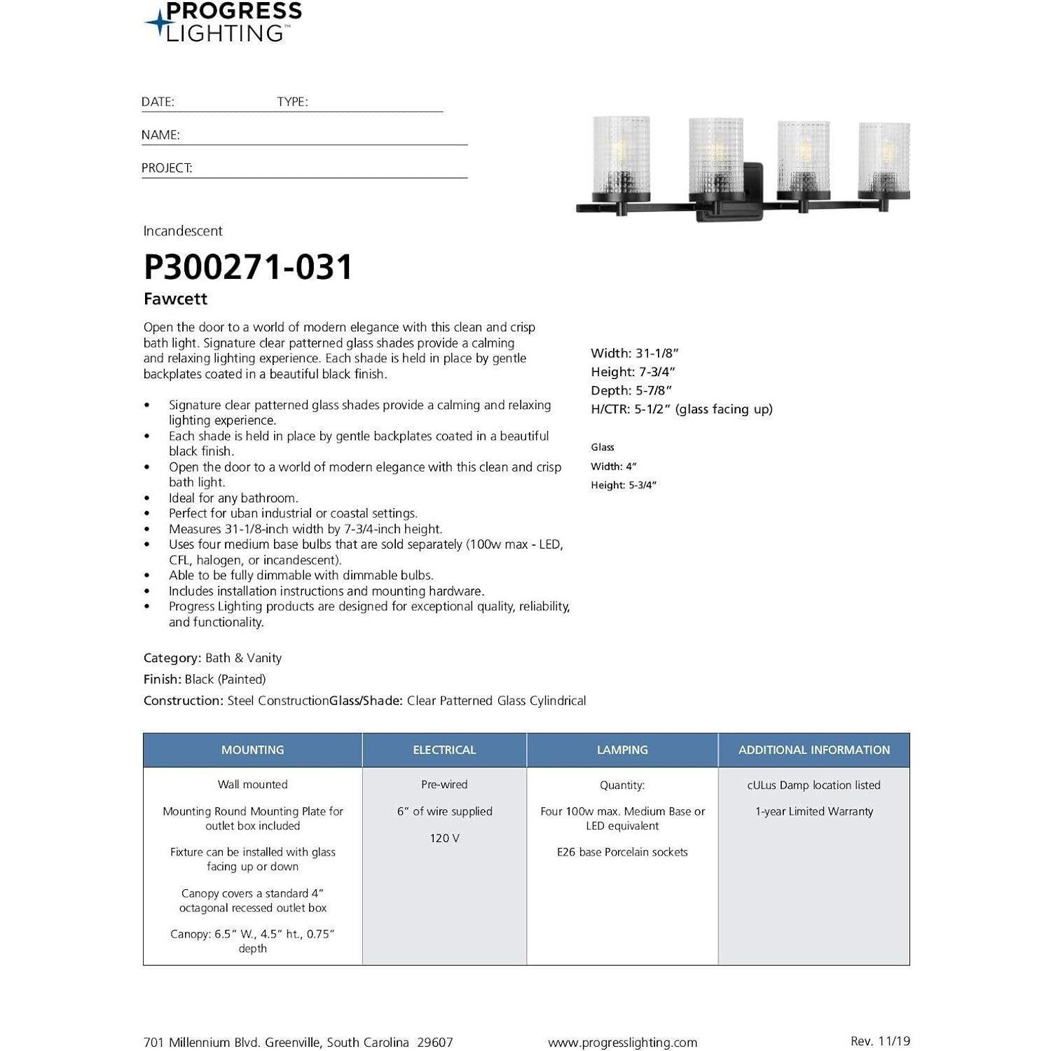 Progress Lighting P300271 Fawcett 4 Light 31"W Bathroom Vanity - Black