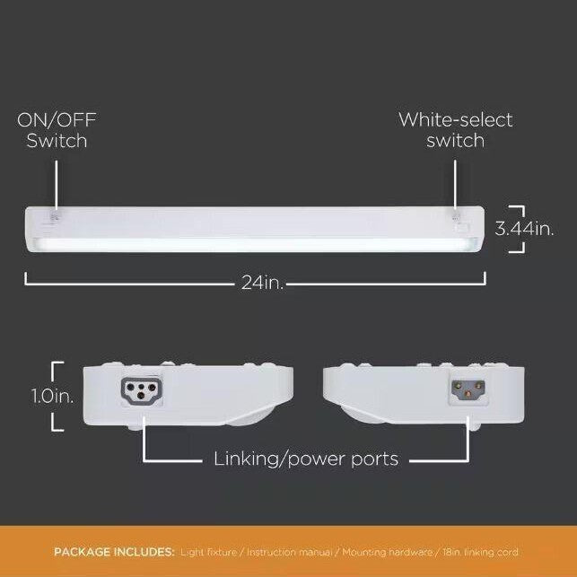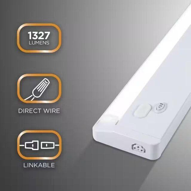 Create your own professional lighting setup with the Ultra ProGrade ProLink Direct Wire 18 in. LED Under Cabinet Light. Gone are the days of inconvenient cord management and the hassle of bulky fixtures becoming an eyesore. ProLink combines the best features you could want into a sleek, durable and high-powered light fixture. Providing 1050 Lumens of fully diffused, premium-grade illumination, you will be amazed at how much better your space looks under this light. This fixture also lets you change the color temperature from cool white light to warm light or even daylight, all with the flip of a switch. Direct-wire installation has been streamlined - everything you need comes included and ready to go in the box. You can customize your space even further by linking additional ProLink fixtures, whether they be other light bars or pucks. Conveniently connect them with their included 18 in. linking cords for extra reach or the compact linking plugs for end-to-end installation. Improve upon your setup by pairing your fixtures with awesome ProLink add-on modules, such as dimming, motion-sensing, remote control and USB power (sold separately). The perfect fit for kitchens, office spaces, workbenches and more, your Ultra ProGrade ProLink Direct Wire 18 in. LED Under Cabinet Light provides you with lighting for life.