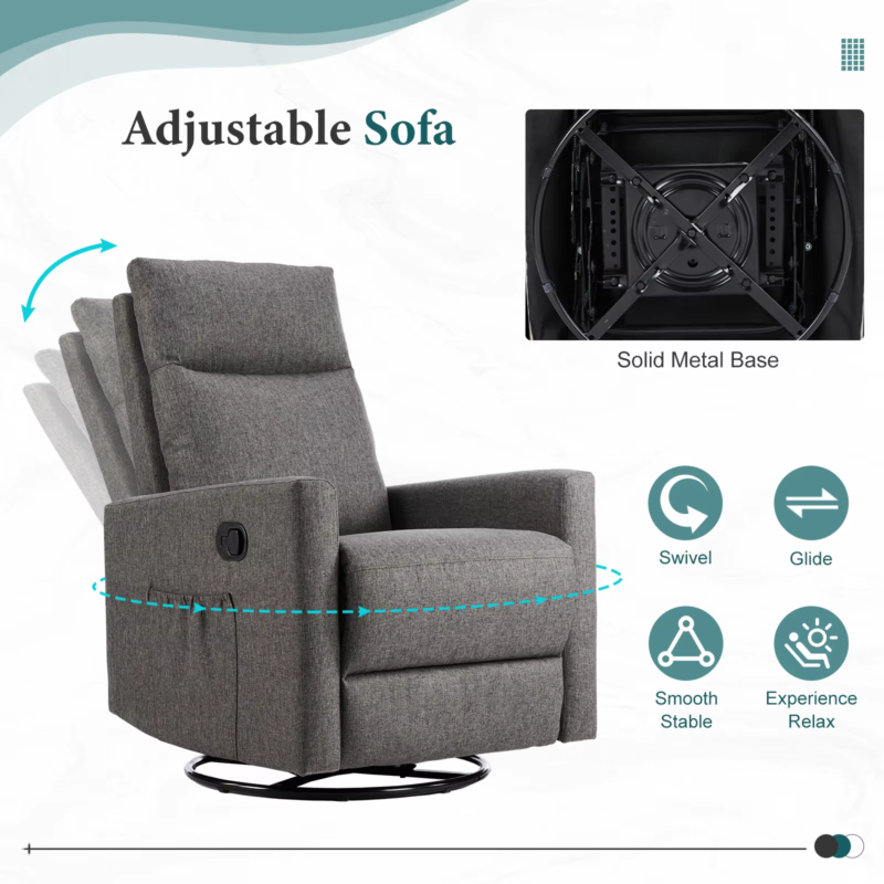 • Versatile Usage: Perfect for nurseries, living rooms, bedrooms, or studies, this recliner blends seamlessly with any decor. It’s the ideal spot for relaxation, whether alone or with family and friends.