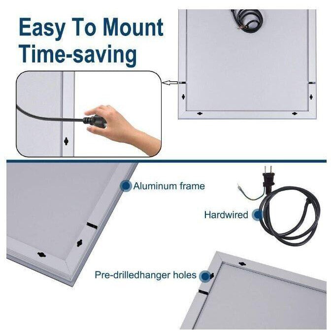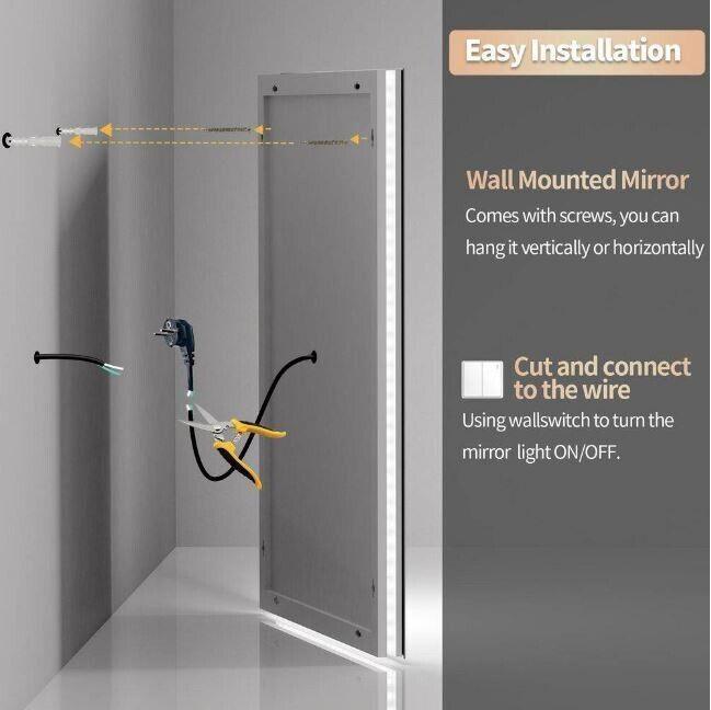 - You can Plug in or use Wall Control by hardwiring. Mirrors are equipped with US plug ( wire 2m long ), you can cut the plug and connect wire to the wall switch, so you can turn on/off the mirror at the bathroom door. You can also use the touch buttons.
