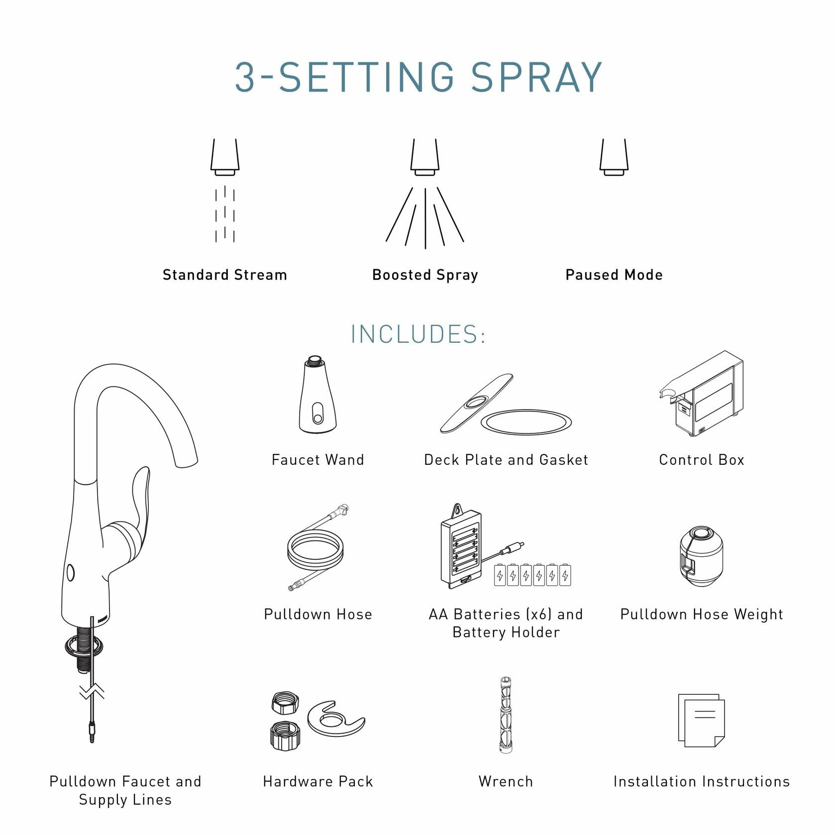 The MOEN Arbor Single-Handle Motion Sense Wave Pulldown Sprayer Kitchen Faucet offers extended versatility without the need for a separate side spray. Motion Sense Wave single-sensor touchless activation allows you to easily turn water on and off with the simple wave of a hand no need to touch the faucet with dirty or wet hands. Complete everyday tasks with greater speed and efficiency with this convenient, hands-free control.