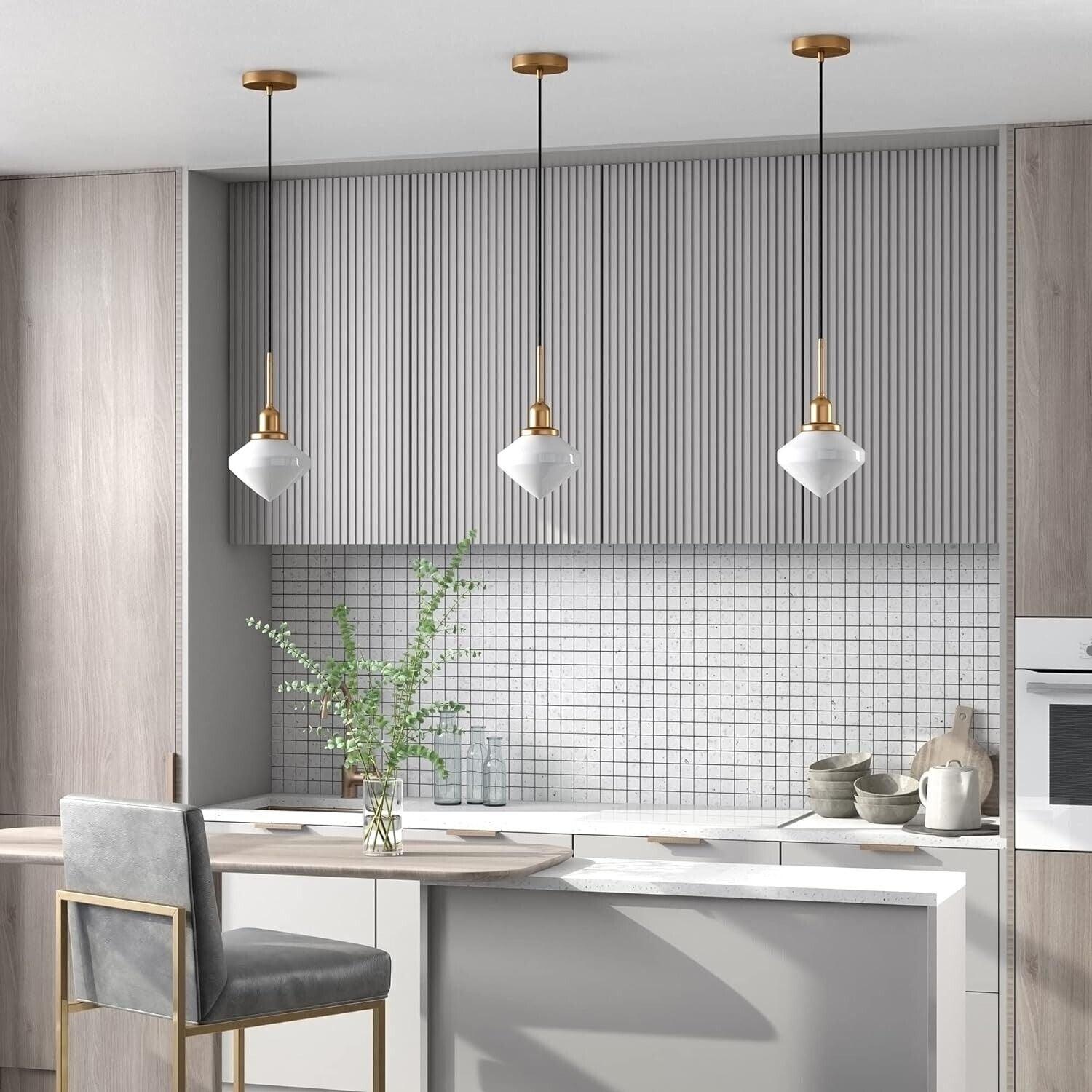 Zariza 8" Wide Pendant with Glass Shade in Brass/White Milk - Like New